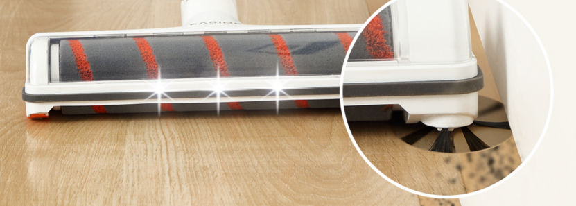 Side brush perfectly solves this problem. This technique comes from ILIFE robotic vacuum. It sweeps the dust/debris from the corner to the floor head, so there is no more dust left.