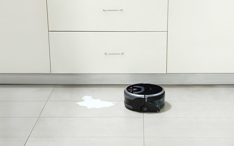 A10 is transformed into a vacuum by replacing the water tank with the dustbin. It cleans with strong, consistent suction and a self-adjusting 2-in-1 roller brush which keeps close contact with the floors while cleaning. Detection of carpet and MAX mode activation are automatic to ensure maximum dust and hair pickups.