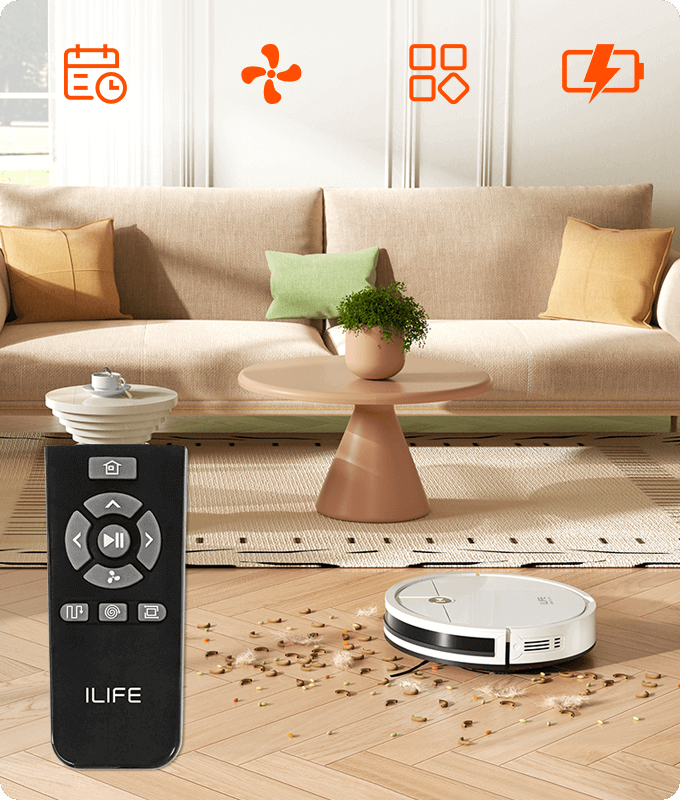 Gestione y programe las tareas de limpieza cómodamente utilizando el mando a distancia.