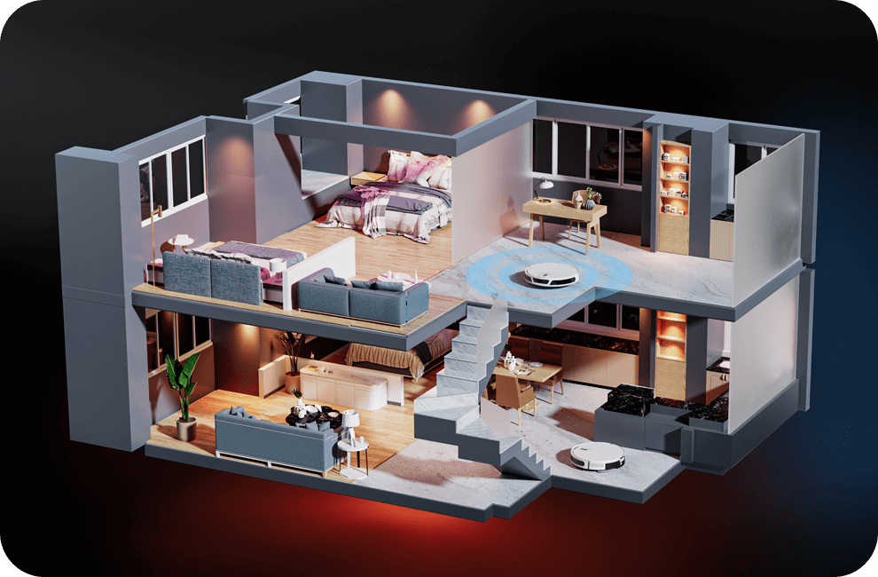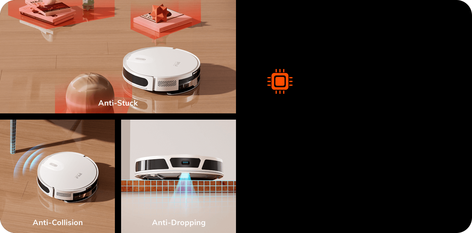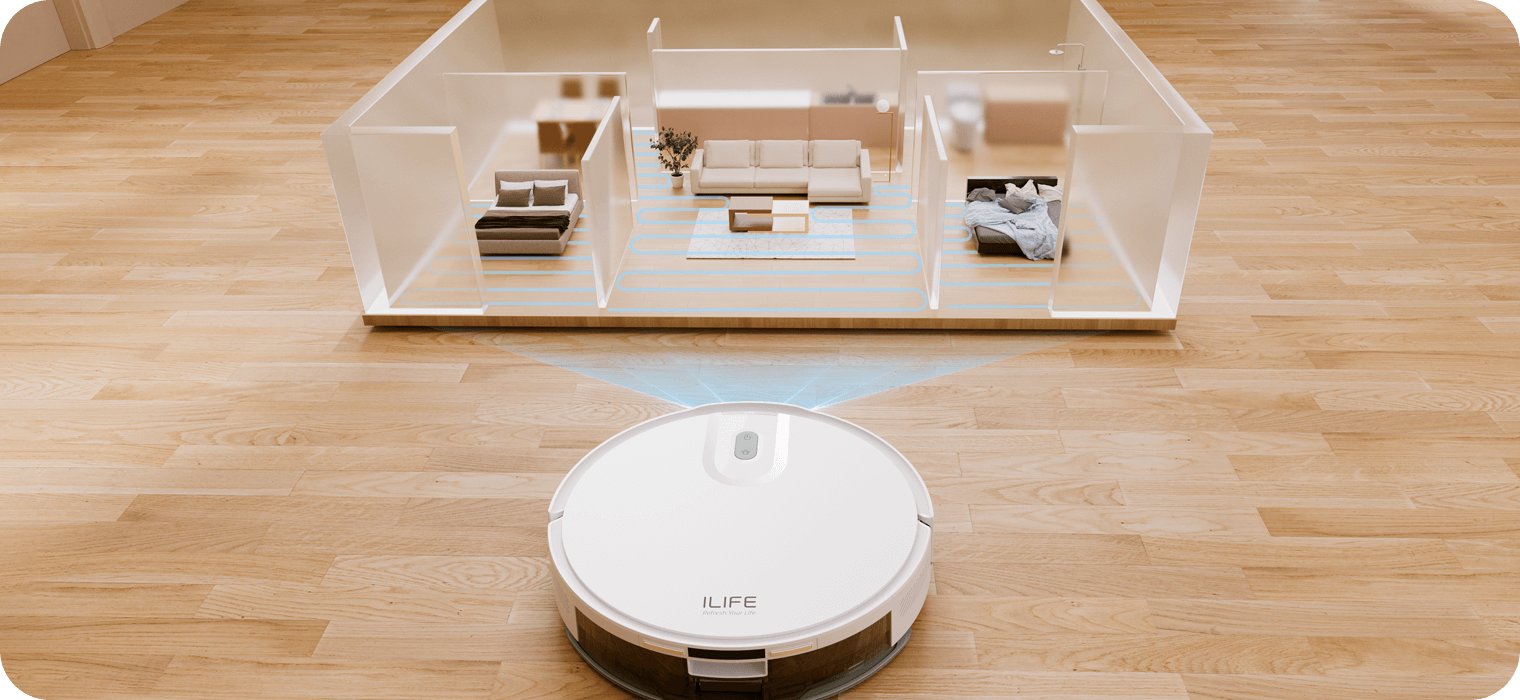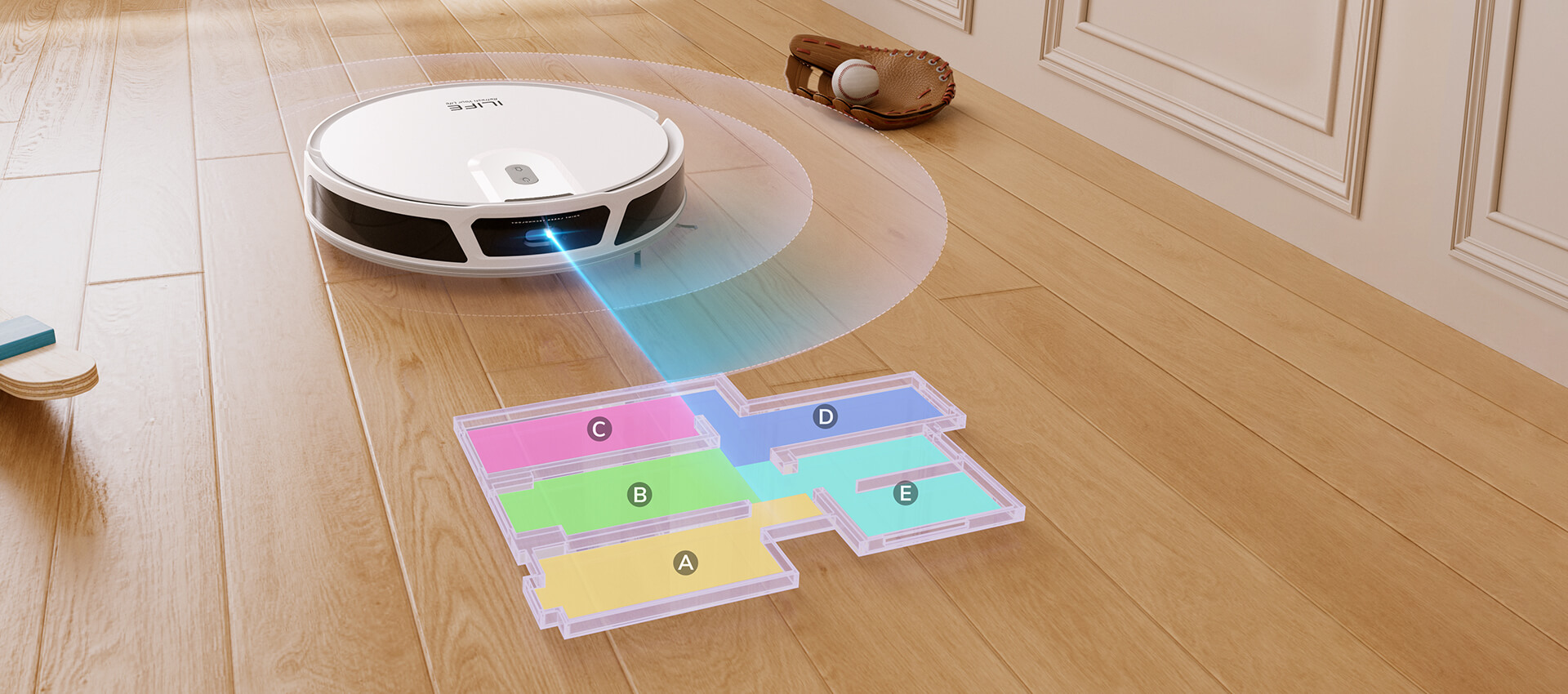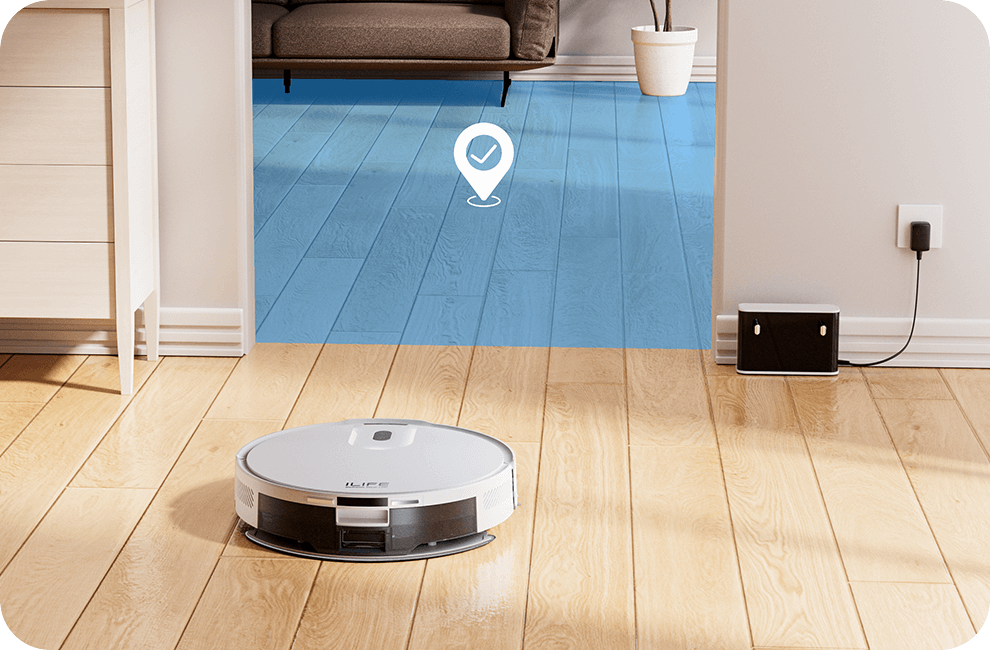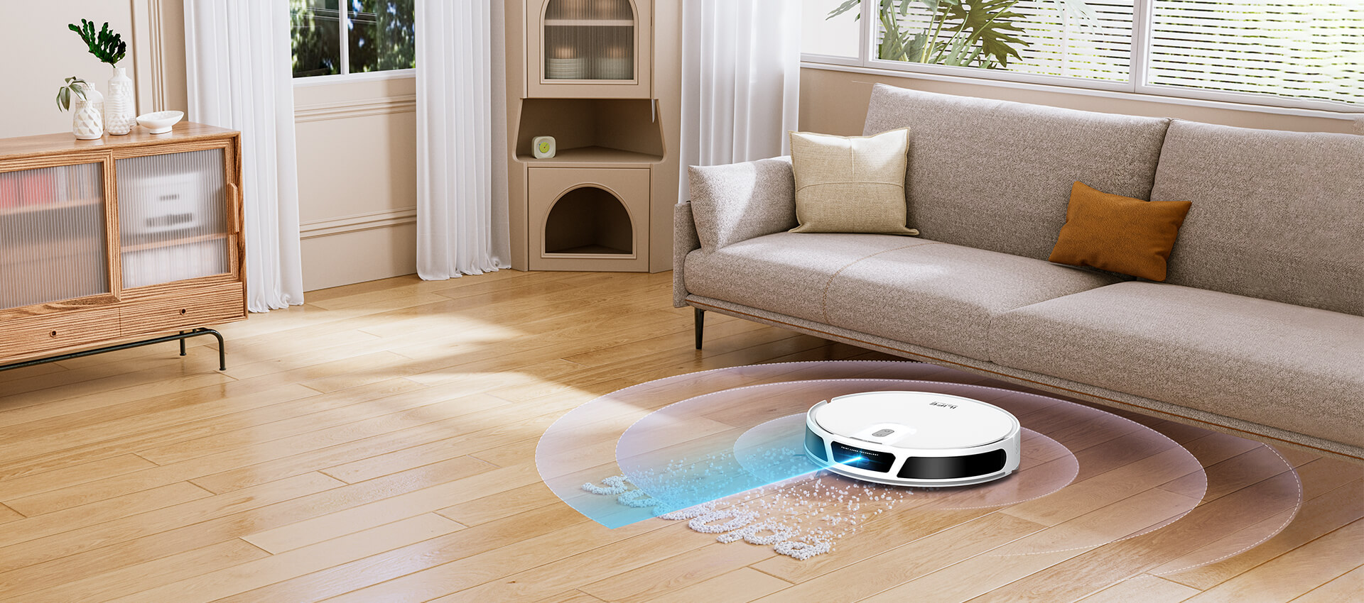 LiDAR integrado para un perfil delgado que accede bajo muebles.