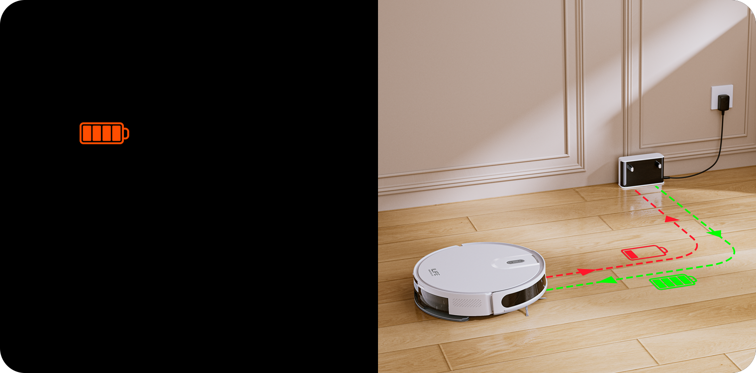Vuelve a la base y reanuda la limpieza tras recargar.