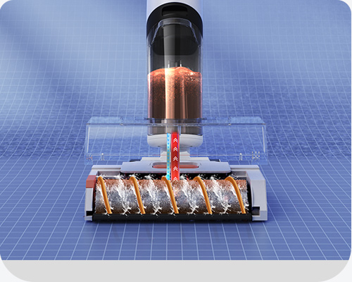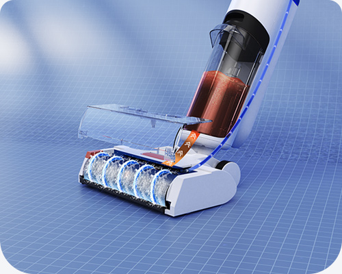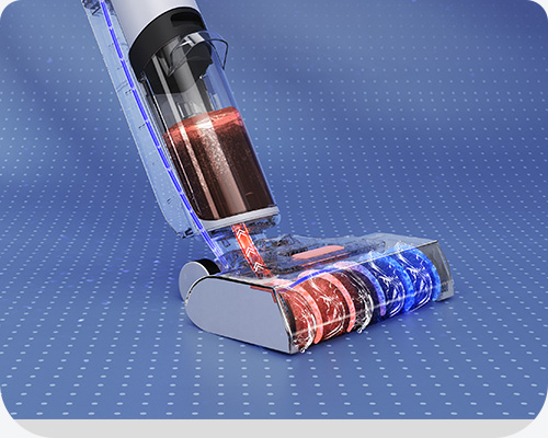 Aspiración, fregado y lavado, un sistema innovador 3-en-1 que elimina eficazmente la suciedad húmeda y seca de una sola pasada.